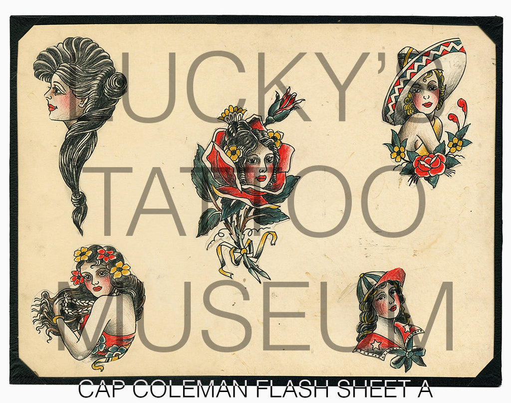 We're excited to offer high-quality prints of traditional flash artwork from some of the most respected names in tattoo history. Each 11" x 14" piece is printed on heavy watercolor paper and available framed or unframed. These images come straight from the Lucky Supply Tattoo Museum archives—real-deal flash that helped shape the industry.