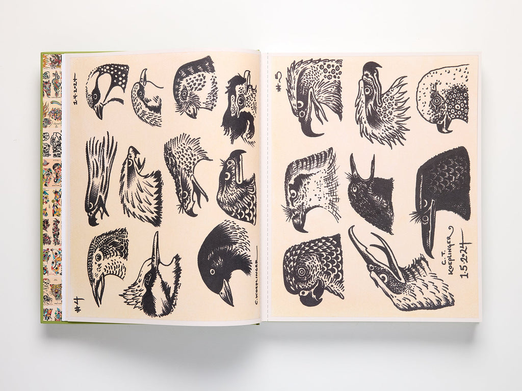 The larger version (11” x 16”) is intended to be a collector’s edition, but the choice of how the collector wants to use it is completely up to them. The book would be perfectly at home displayed on a bookshelf, but Koeplinger wanted to encourage artists to remove the pages. With this concept in mind, we printed the larger version with distinct cut-out lines so that the reader can choose to use each individual page as reference material, or, remove them with the intention of hanging them as pieces of art.