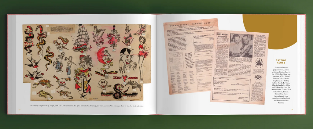 Del Cook’s story is an interesting one: a tattoo fan and tattoo history collector when most of the history we look back on was still happening. This collection contains iconic flash, hundreds of designs, historical photos, and works from legendary names such as Coleman, Waters, Wagner, Jensen, Skuse, Mingins, Hartley, and Wicks. Included in this collection is information about Del Cook and his friendship with tattooists Al and Dale Shiefley, Huck Spaulding, and Les Skuse as well as never before seen photos of what was most likely the first “tattoo convention”: The Sandusky Tattoo Club.