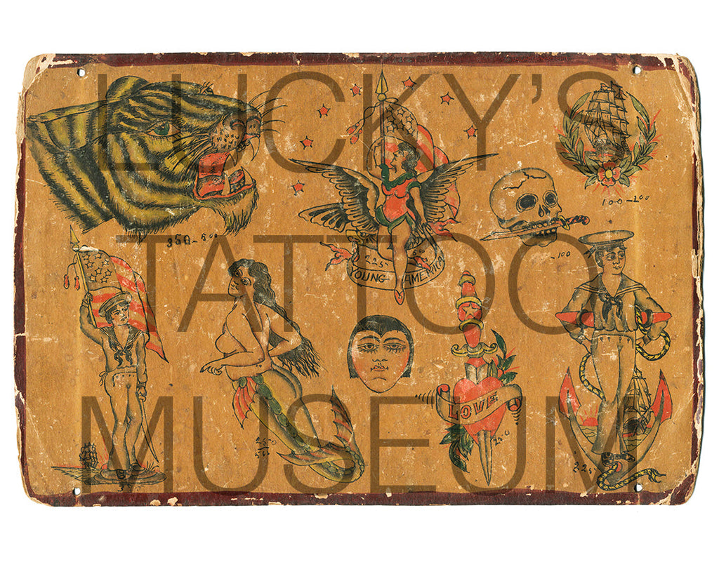 We're excited to offer high-quality prints of traditional flash artwork from some of the most respected names in tattoo history. Each 11" x 14" piece is printed on heavy watercolor paper and available framed or unframed. These images come straight from the Lucky Supply Tattoo Museum archives—real-deal flash that helped shape the industry.