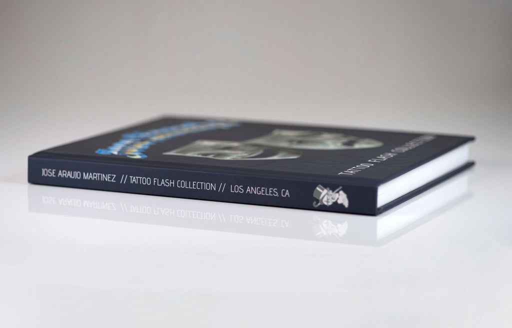 Tattoo Flash Collection is the newest book from Jose Araujo. It is a tribute to Los Angeles culture and reintroduces the romantic times from the 90’s and the influential pages from Teen Angels magazine. This hardcover book is filled with over 200 pages of imagery heavily influenced by the traditional style of tattooing. This book is a must have for any shop or home library.