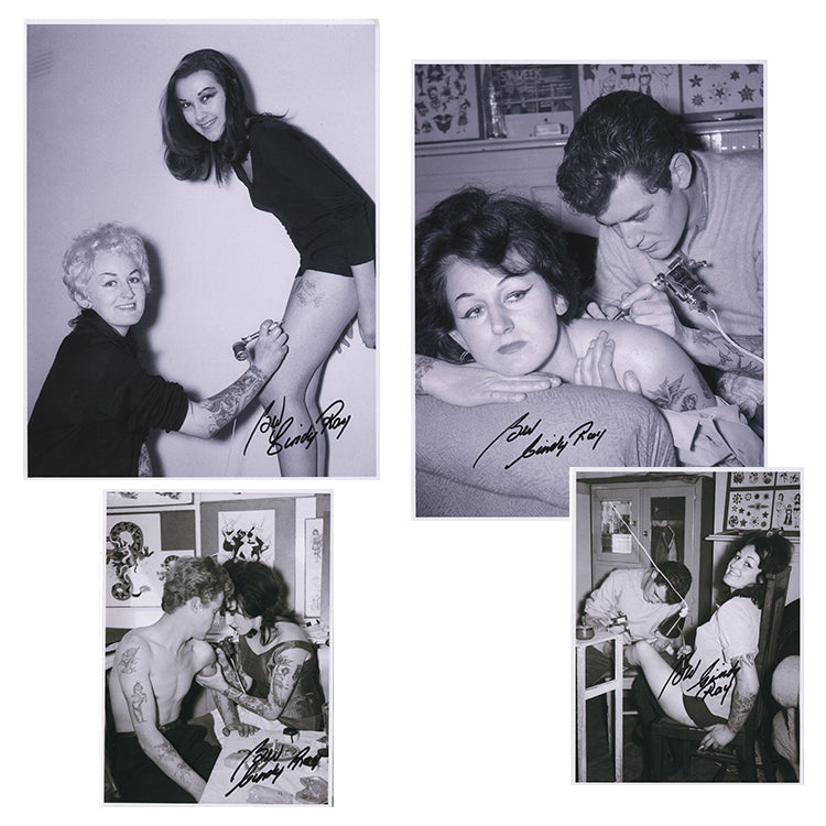 Choose from 4 designs in 8.5x11" and 4 in 5x7"—collect them all! These rare prints capture a piece of tattoo heritage from the woman who helped bring it into the spotlight back in 1961, and who went on to tattoo for over 50 years.