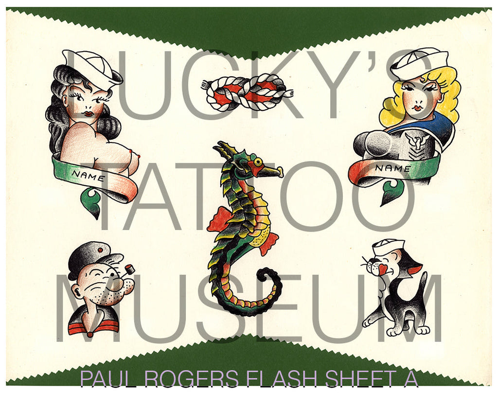 - Flash Sheet A features pin up girls, a seahorse and other nautical images