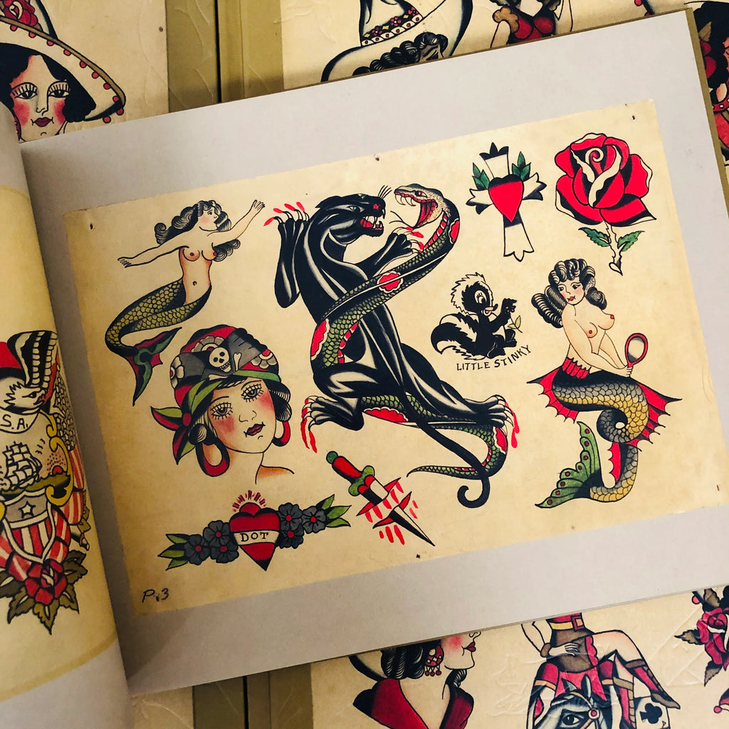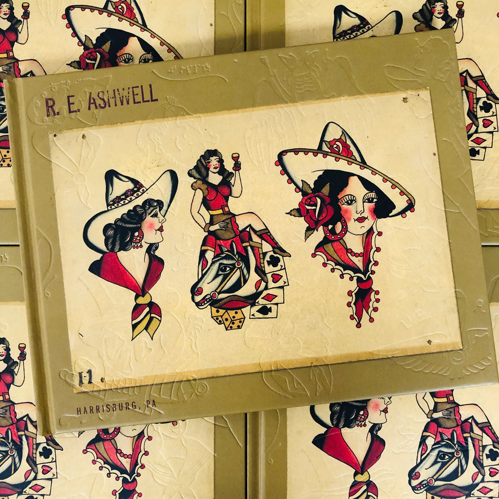 Ralph Ashwell tattooed from the 1930s to the 1960s, his career spanning at least two wars and the multitudes of service members that accompanied them. Ashwell had a wide range of designs to choose from, including roses, banners, military symbols, pop culture images, and much more. Despite his lack of fame, he is regarded as one of the greatest American tattoo artists. His flash captures the functional, technical, and artistic aspects of this versatile and visually appealing craft. This book is a lovely collection of some of his best work. A must-have for any tattoo artist with a traditional bent!