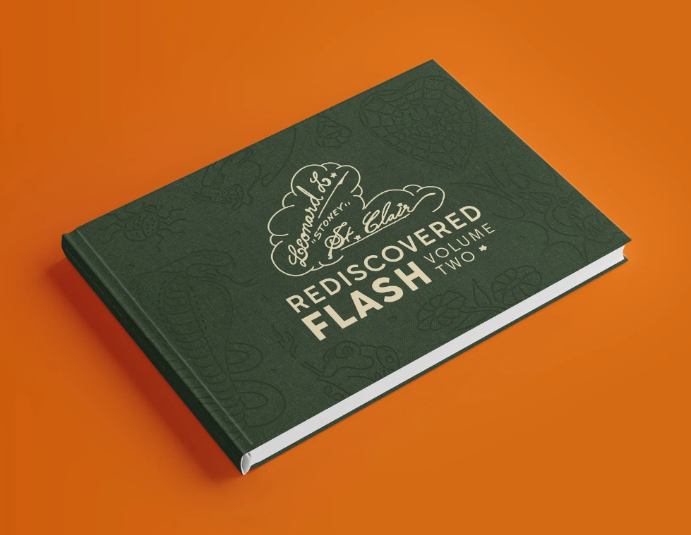 Although Leonard “Stoney” St. Clair’s name is universally known amongst the tattoo artist, little of Stoney’s flash has been published or seen. Recently, Columbus Tattooer Joey Knuckles, was able to acquire over 30 years of Stoney’s flash and effects. Stoney uniquely wrote the date and location of each painting on the back (as well as when he would touch up or add to a painting). Volume 1 contains a practically complete picture of Stoney’s beautifully hand painted flash from 1952-1968, from his time in Biloxi, Mississippi and Tampa, Florida.