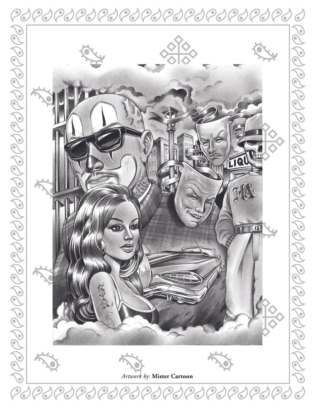 With forewords by Jack Rudy, Franco Vescovi and Chuey Quintanar, the Smile Now Cry Later book includes “Tragedy and Comedy” themed art throughout tattoo history by Chuey Quintanar.
