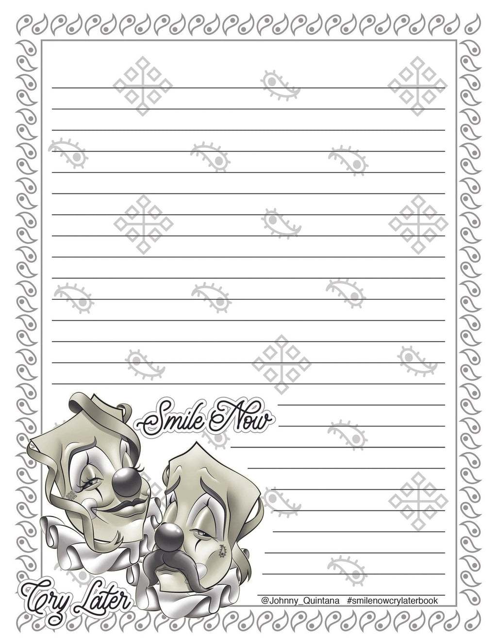 The book includes tutorials on how to draw his "smile now cry later masks." for beginners and intermediate artists. There are also templates, guides and many sketches for artists to build on and create their own version of the Smile Now Cry Later masks…