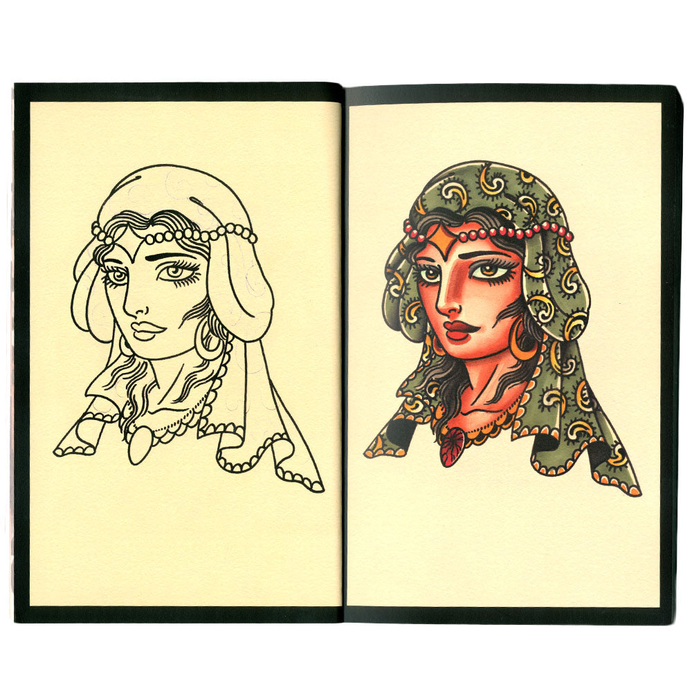 The Look of Love features 66 images of female portrait references and includes a line drawing and colored version of each image.